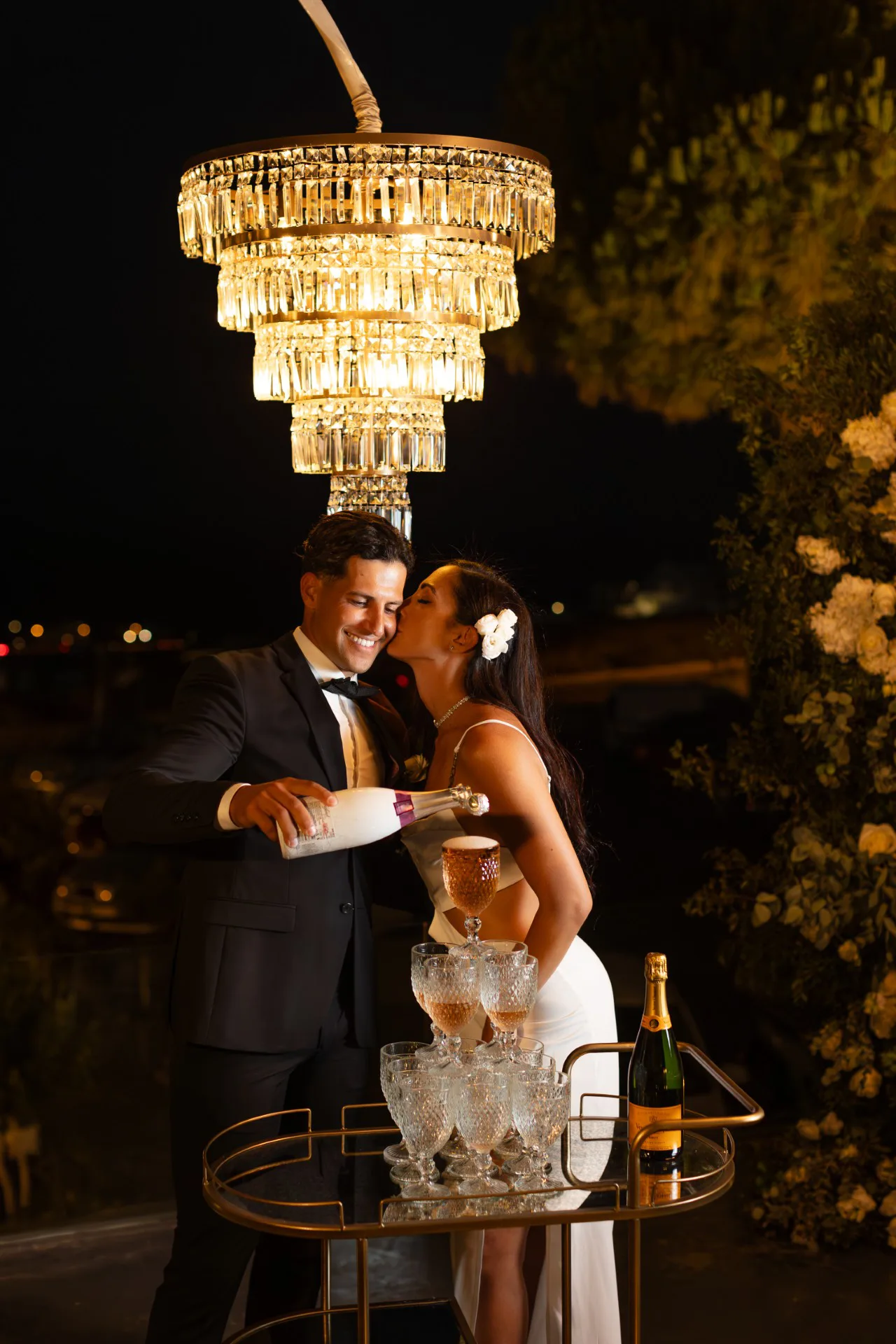 Located on Santorini’s capital, our wedding venue goes beyond the ordinary; it’s a love nest in the clouds. Our terrace, daringly suspended in the air, transforms your wedding into a captivating dance of romance and joy.
