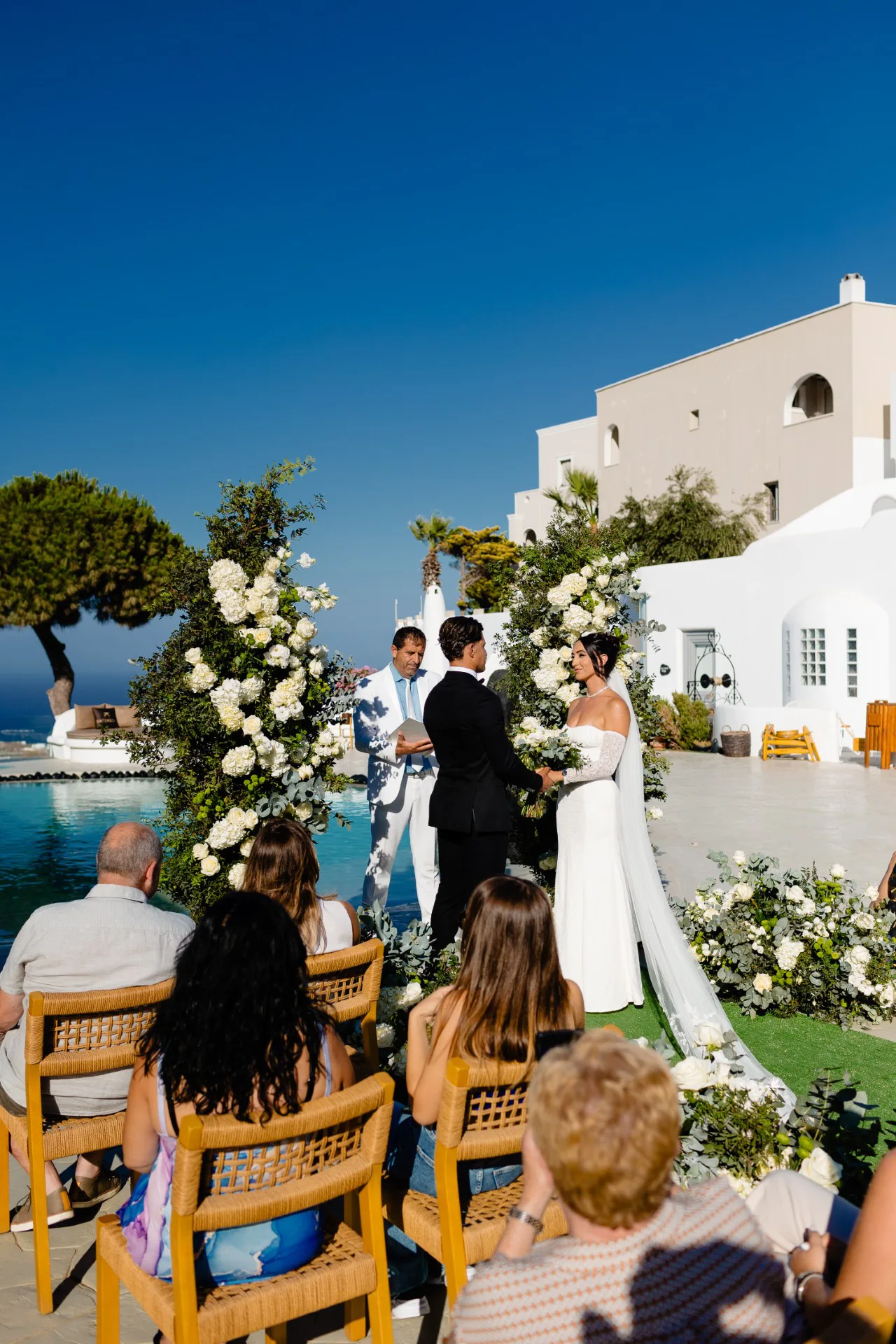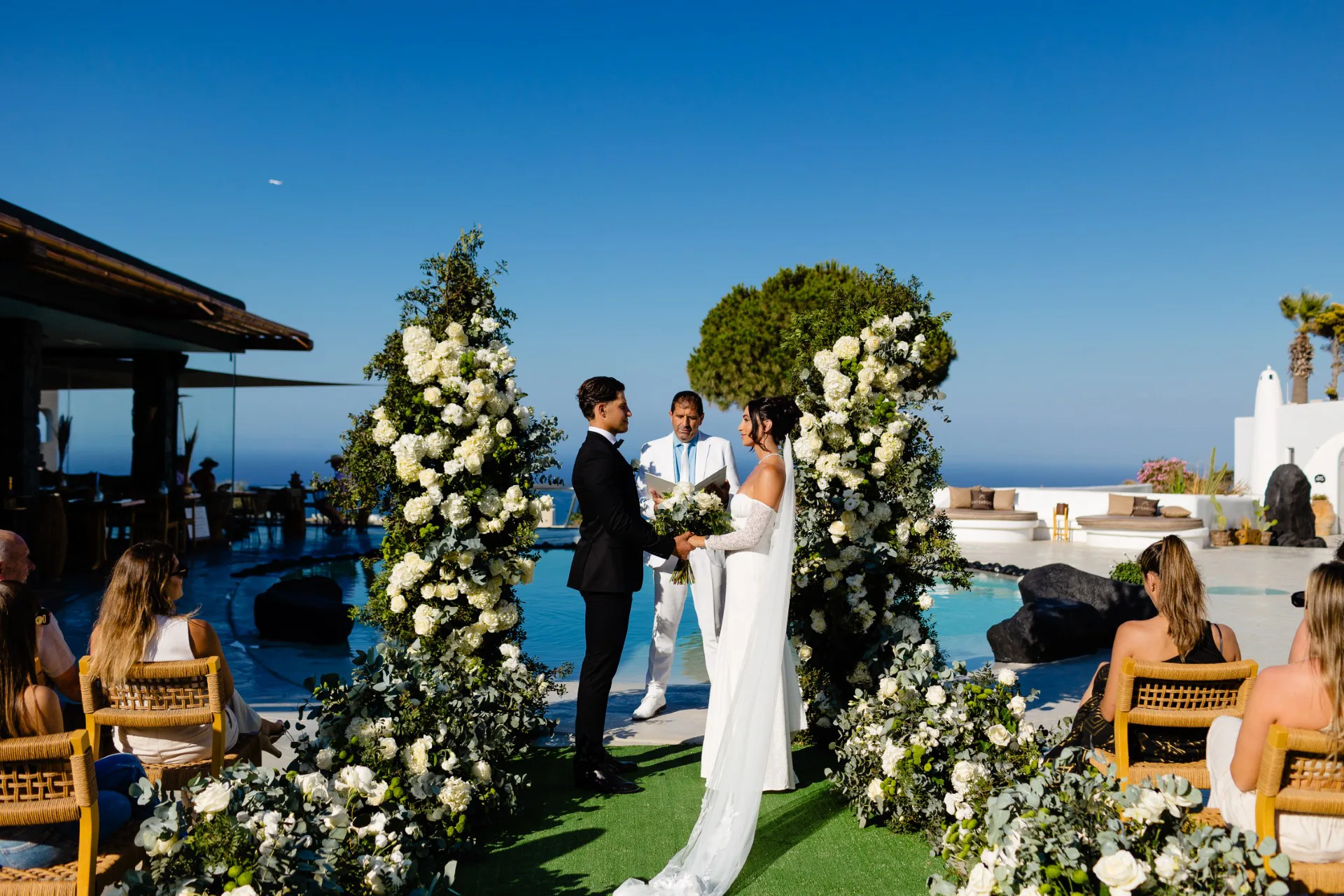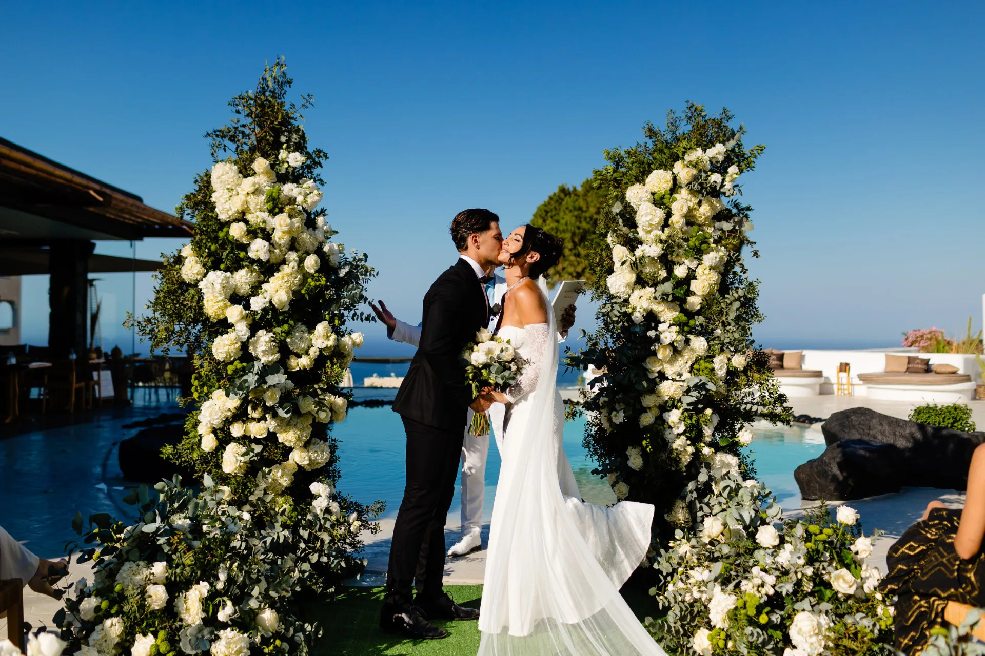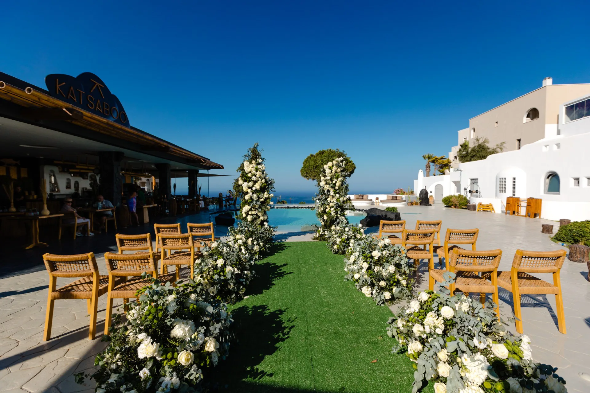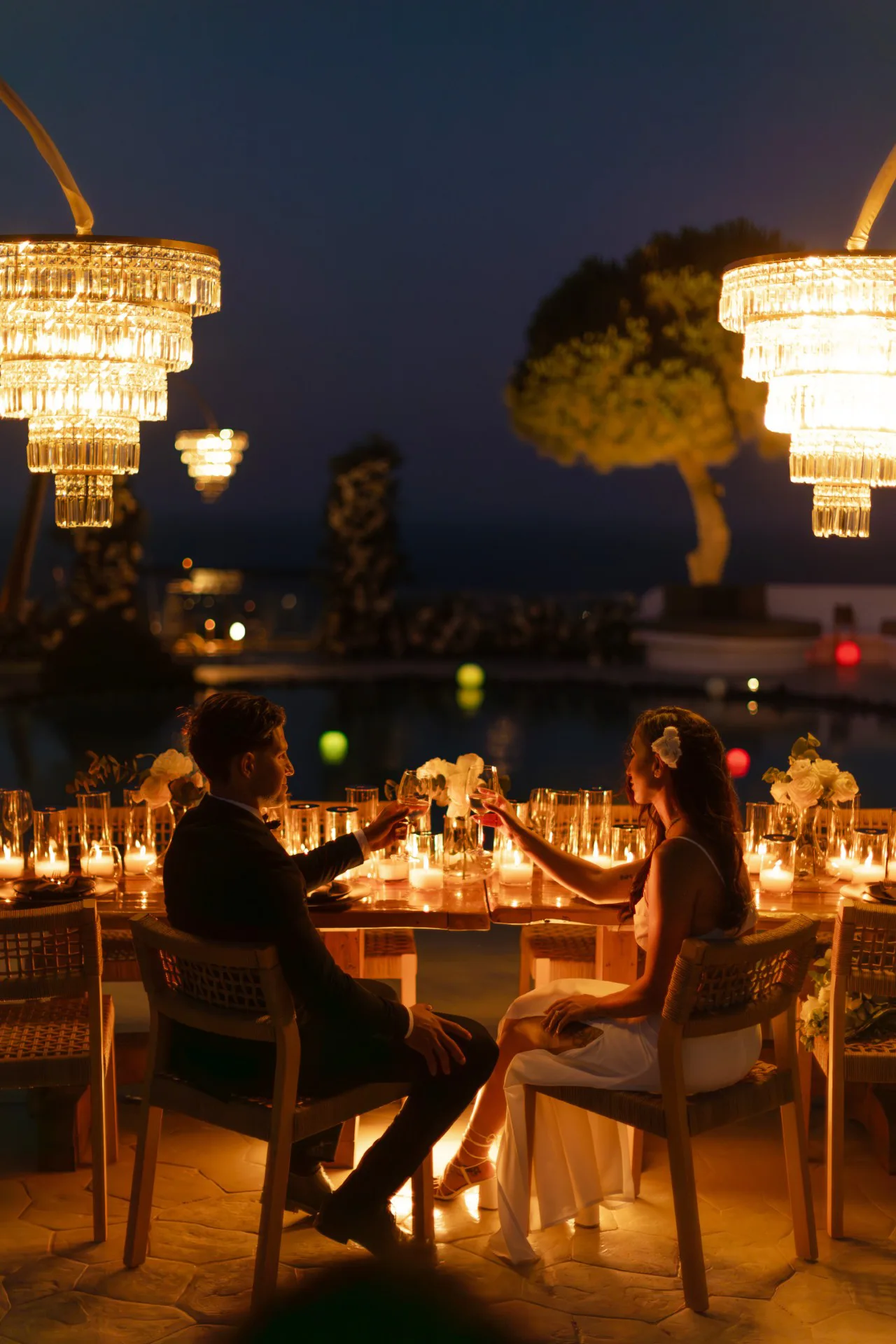 Your celebration unfolds on a terrace overlooking the Aegean Sea. It’s not just a wedding, it’s a symphony of elegance and nature’s enchanting drama, in a mind-blowing dreamy setting.